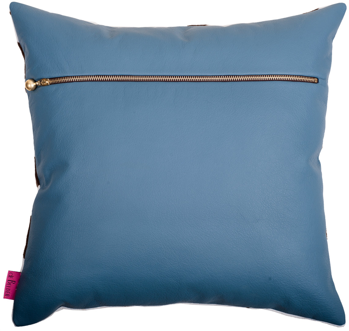 Kuddar med särskiljande och slående djurmönster på tryckta tyger, kombinerat med ett grönt mjukt, följsamt semi-anilinläder. En komönsterkudde med en fantastisk dragkedja på baksidan.